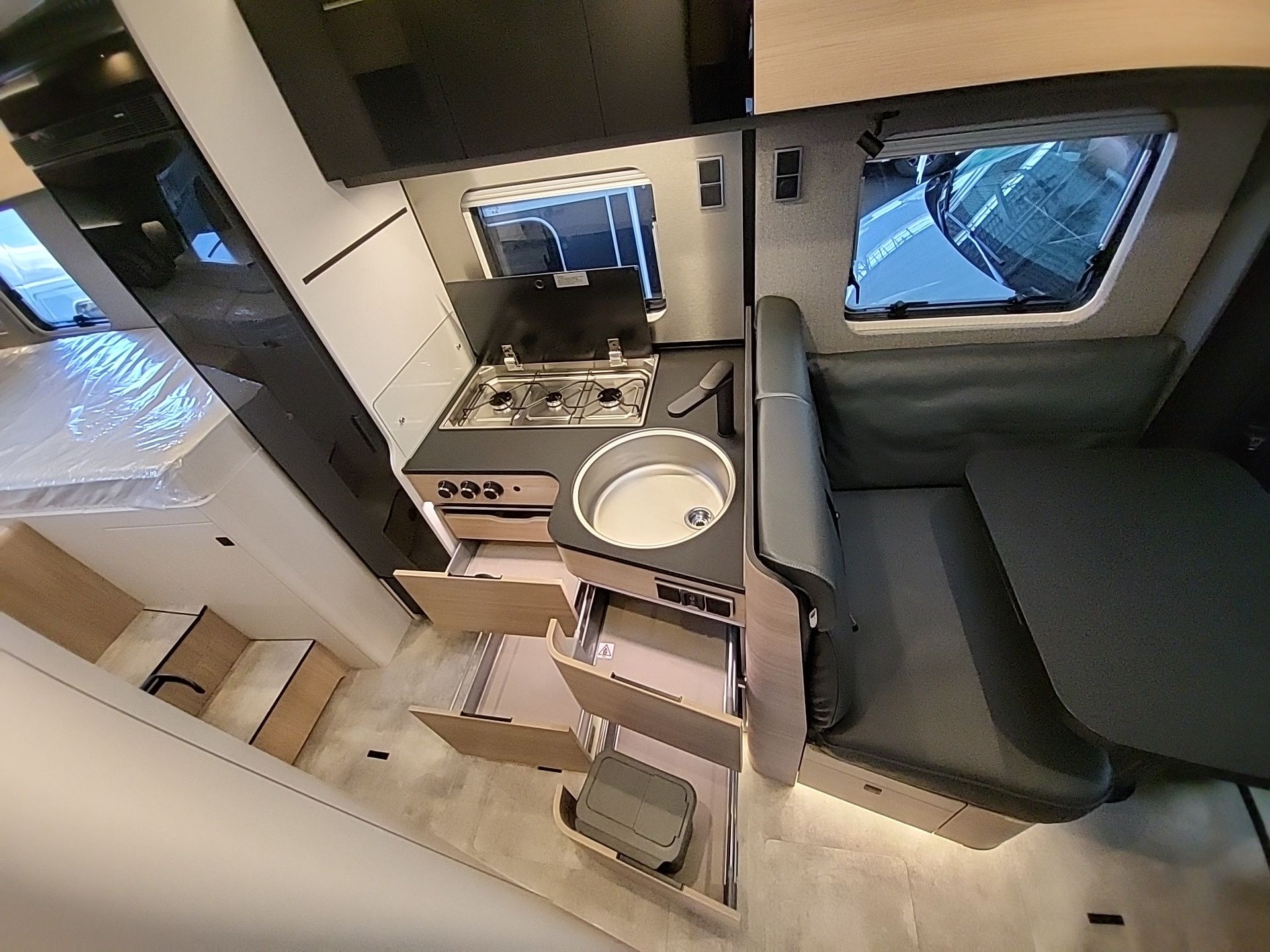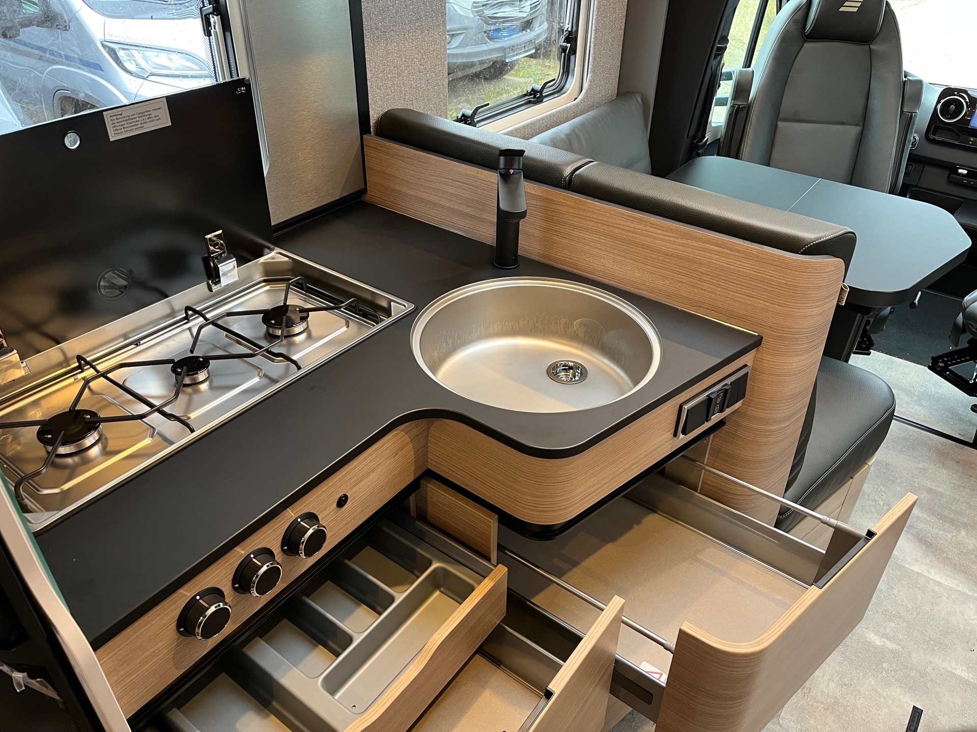 - Schublade und Einlegewanne als Stauraum in der Sitzgruppe