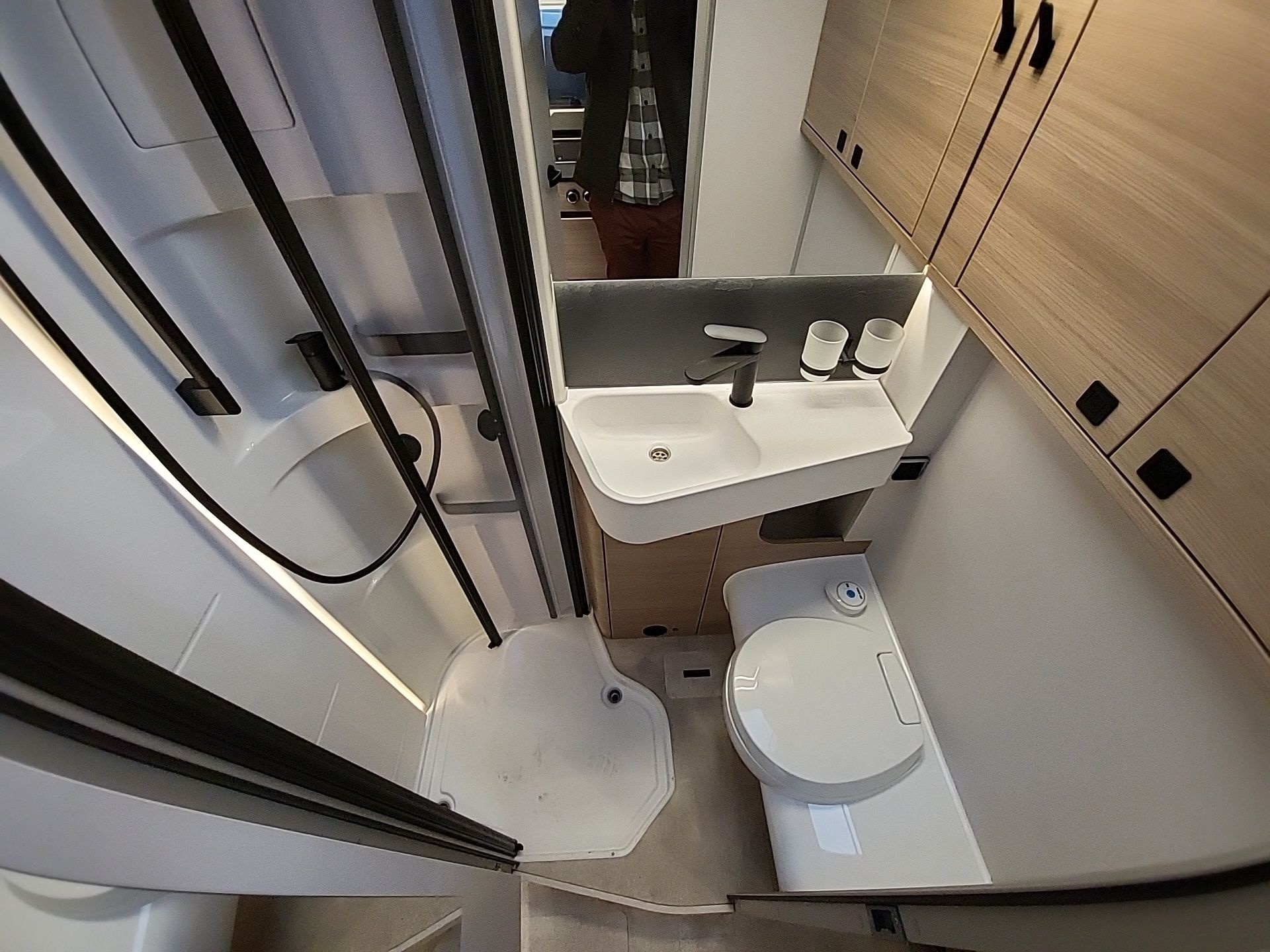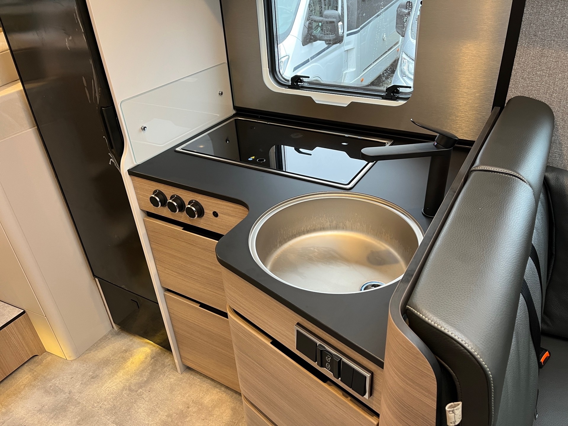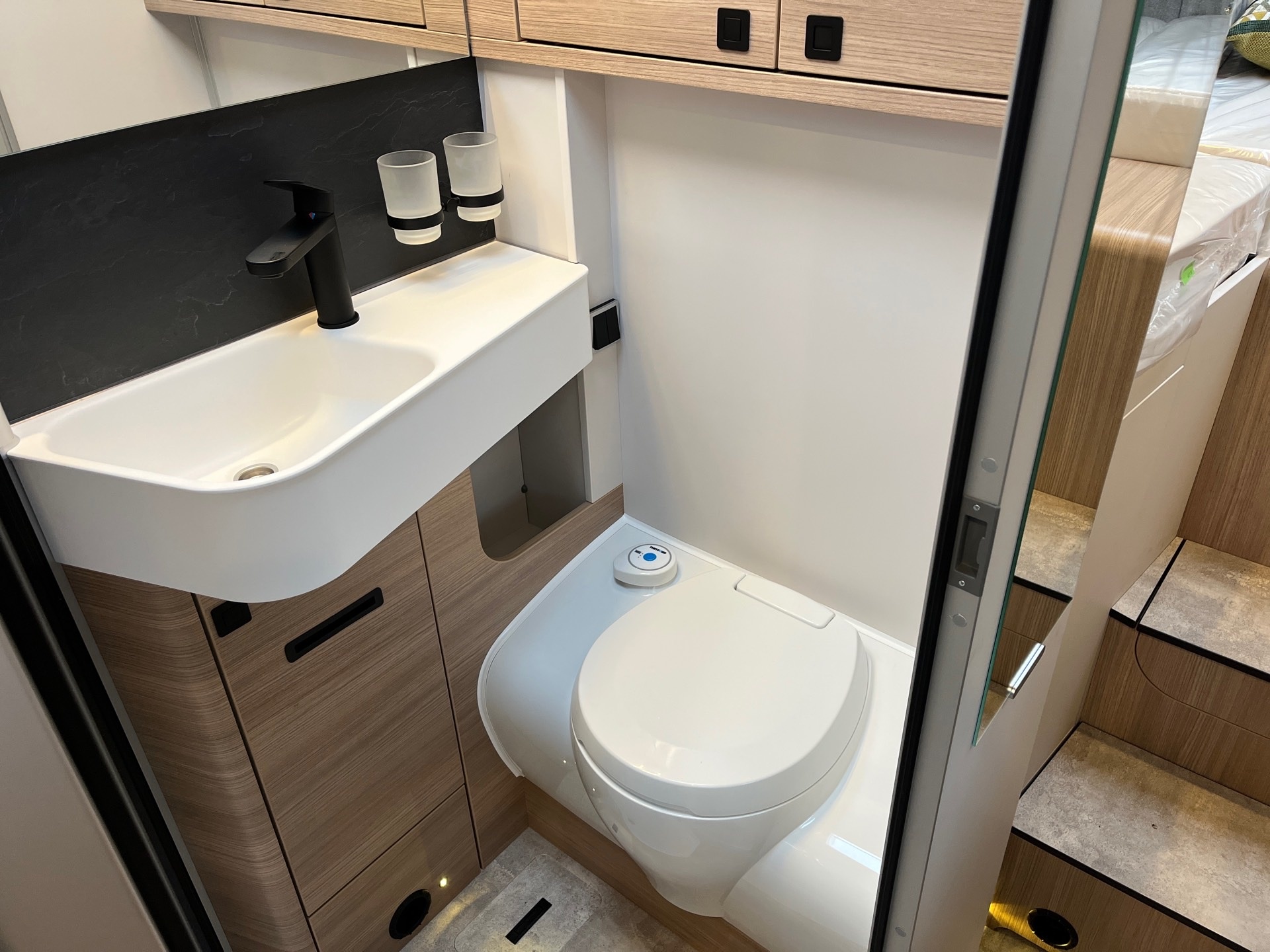 - Komfort-Eingangstür mit Fenster, Verdunkelungsrollo, integriertem Mülleimer