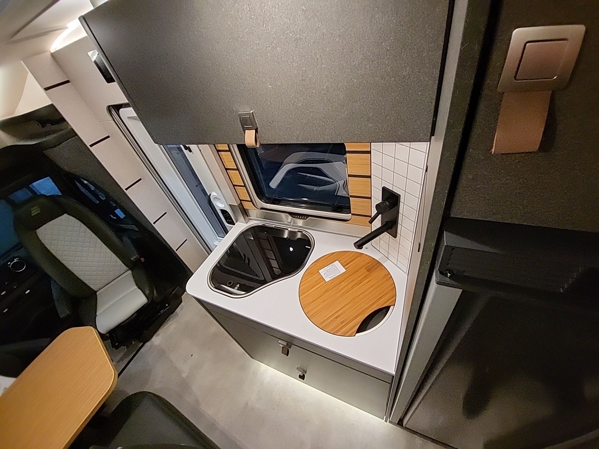 + KomfortEingangstür mit Fenster, Verdunkelungsrollo, integriertem Mülleimer und